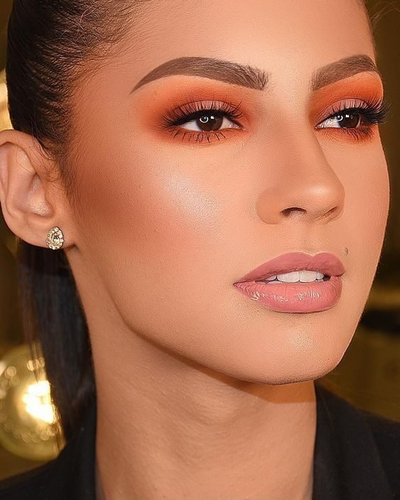 Look at this lady wearing a pinky-orange shade of lip gloss, eyeshadow, and blusher. Isn’t she looking damn sexy? At least, we think so!