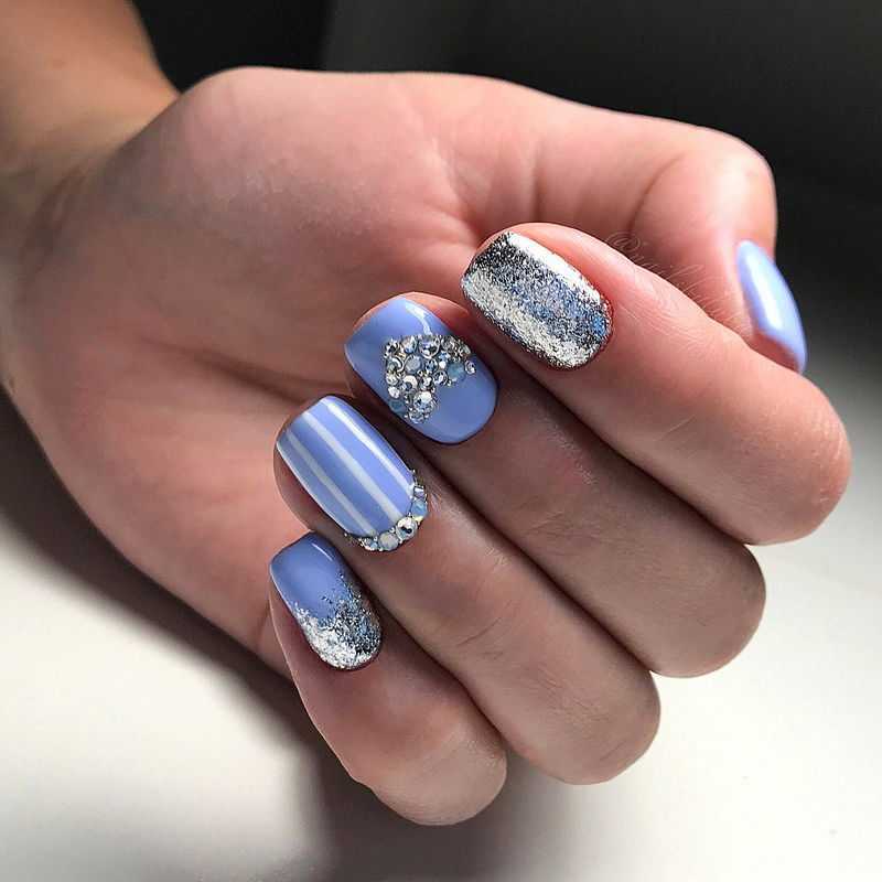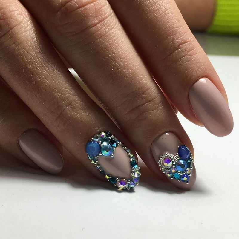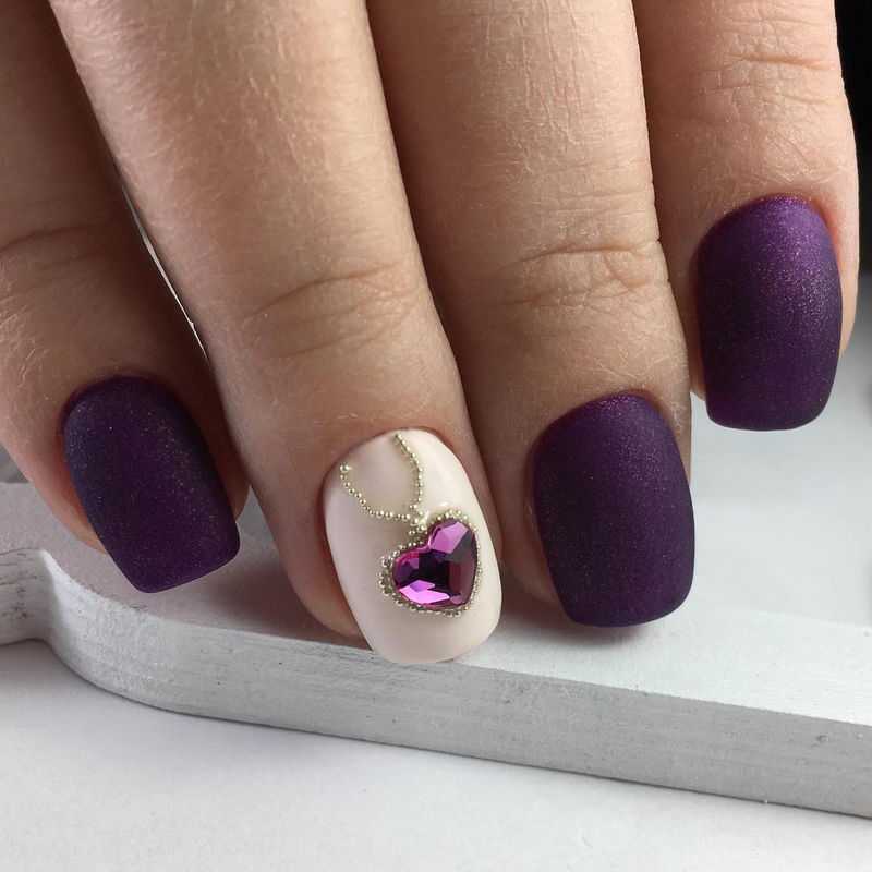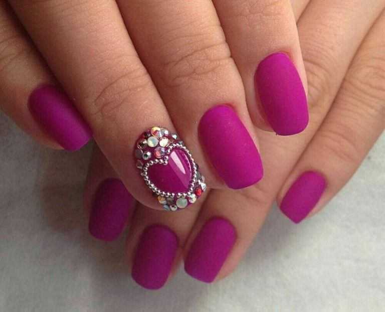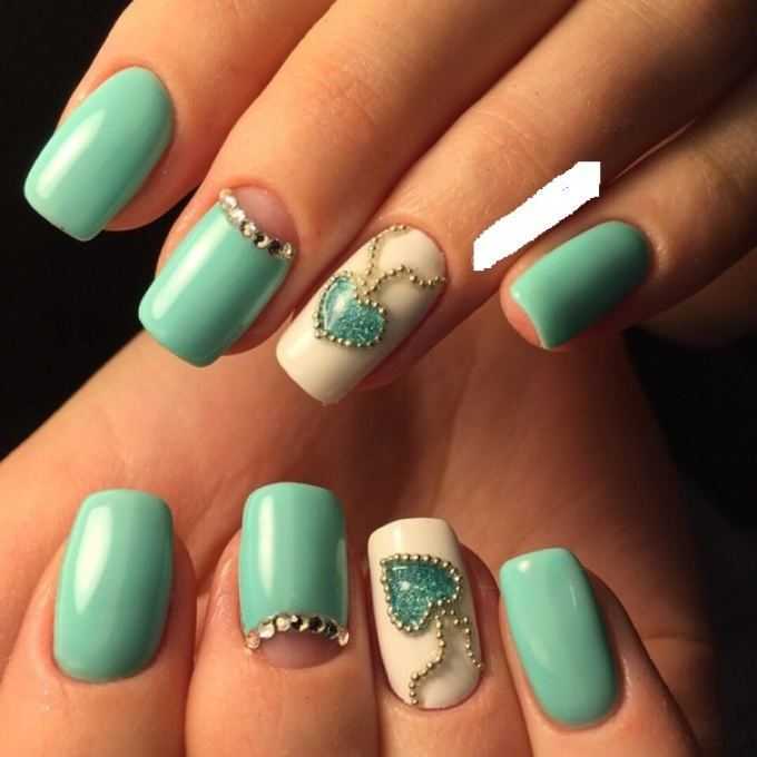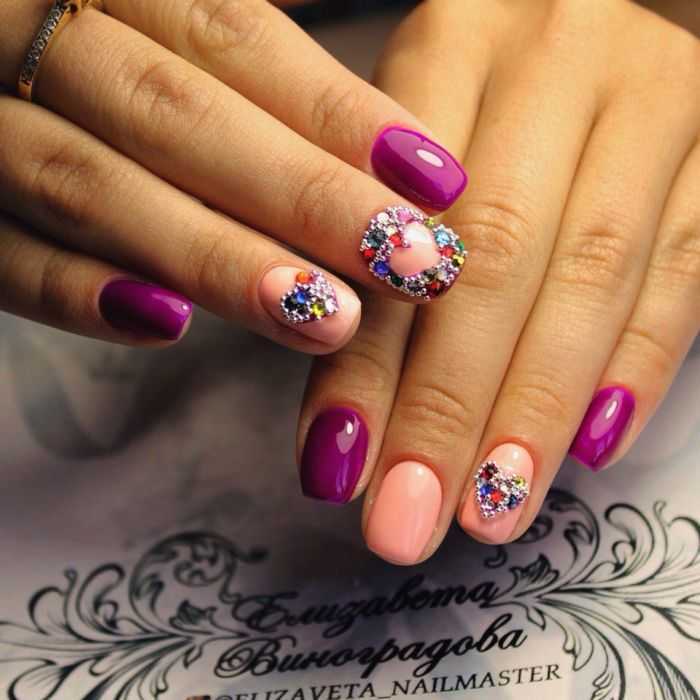 Не менее оригинально смотрится маникюр со стразами или металлической фольгой в виде сердца. В общем, среди всего разнообразия вовсе не сложно найти подходящий для себя вариант.