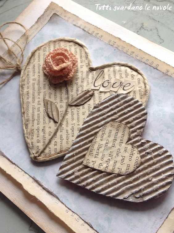 В технике Папье-маше можно делать не только объёмные, но и плоские сердечки, например, как эти:
