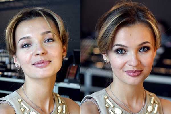 Можно сделать выбор в пользу романтики. Здесь наиболее уместны бежево-розовые тени, нежные персиковые румяна, коричневая тушь и бесцветный блеск для губ. Такой макияж позволяет выделить выигрышные стороны лица и замаскировать несовершенства. Он подходит многим женщинам. Учтите, что подобный мейкап выглядит на фото несколько скромно.