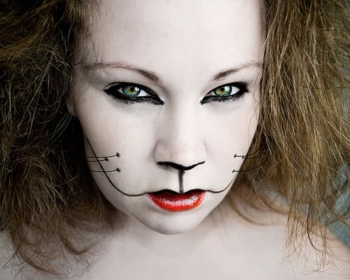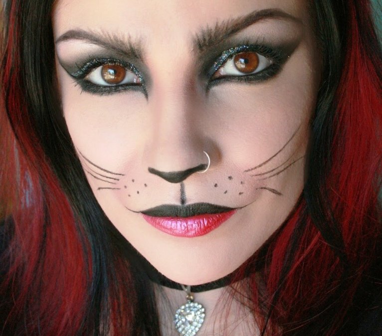 Нередко девушки выбирают на Хэллоуин макияж кошки. Кошки — это животные, известные своей элегантностью, красотой и гордым нравом, поэтому многим нравится ассоциировать себя именно с этими животными. Такой макияж будет очень уместен во время праздника. К тому же, сделать его совсем легко. Нужно нарисовать черный нос и провести линию к верхней губе. Затем можете обвести черным и сами губы, а также нарисовать или наклеить кошачьи усы
