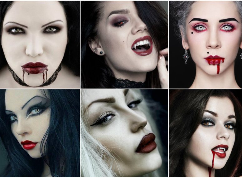 Еще один традиционный образ мистического праздника – вампир. Используя красные и черные оттенки косметики, можно легко сделать мейкап своими руками. Как важные детали образа необходимы: