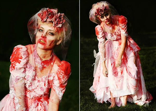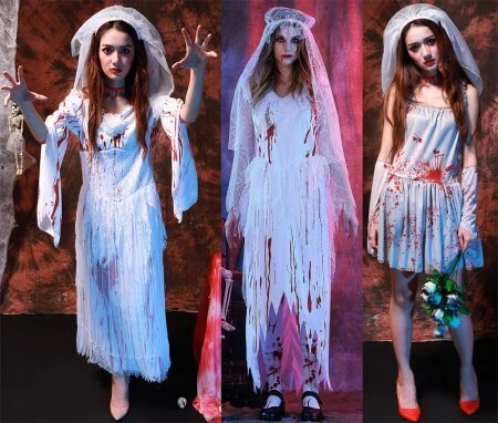 Помимо мертвой невесты, можно использовать и другие варианты. Очень эффектно смотрится окровавленное белое платье. Вместо крови можно использовать обычную краску.