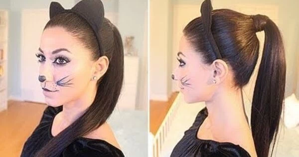 Как вариант, вместо обруча можно использовать свои волосы для создания ушей.