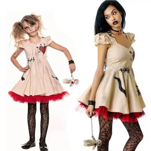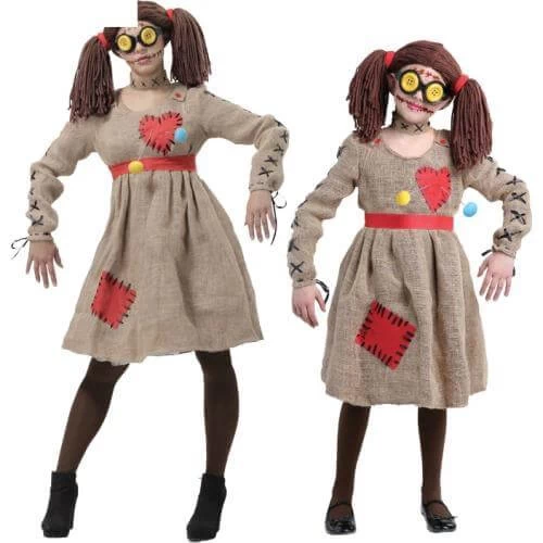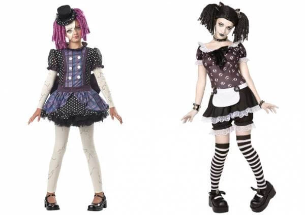 Следующим идет менее страшный образ куклы. Однако он хорош тем, что не требует слишком много затрат. Костюм можно использовать самый бюджетный.