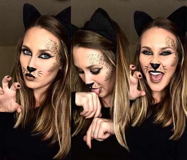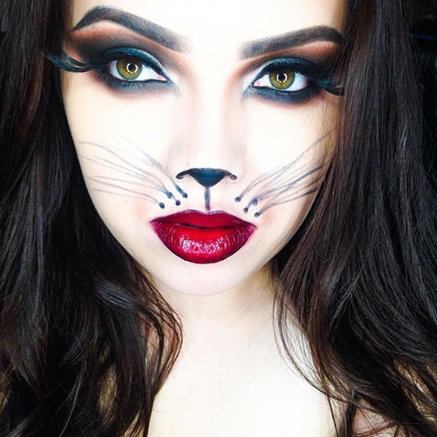 Для создания праздничного образа достаточно сделать выразительный make up со стрелками, использовать яркую помаду ну и нарисовать усики. А если хочется еще больше походить на пушистое очарование, то можно использовать специальные линзы с вытянутыми зрачками.