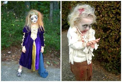 - При открытом лице нужен подходящий макияж. Лицо скрывают белой краской, под глазами нужно сделать темные круги. Для получения эффекта гниения понадобится косметический гель.
