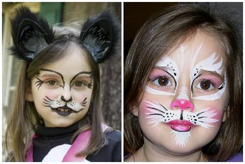 На лице не нужно создавать сложный макияж. Достаточно просто нарисовать милую мордочку с усиками. А на голову надеть обруч с ушками.