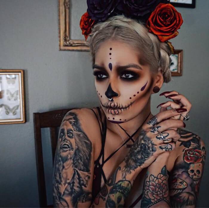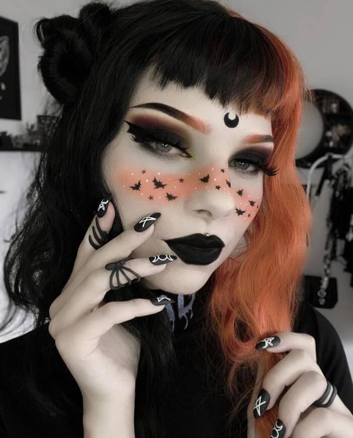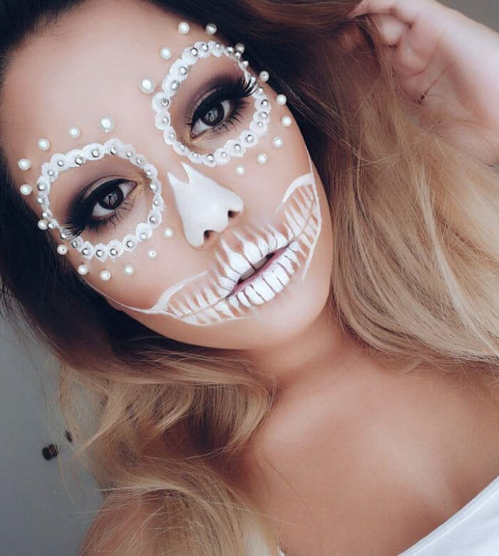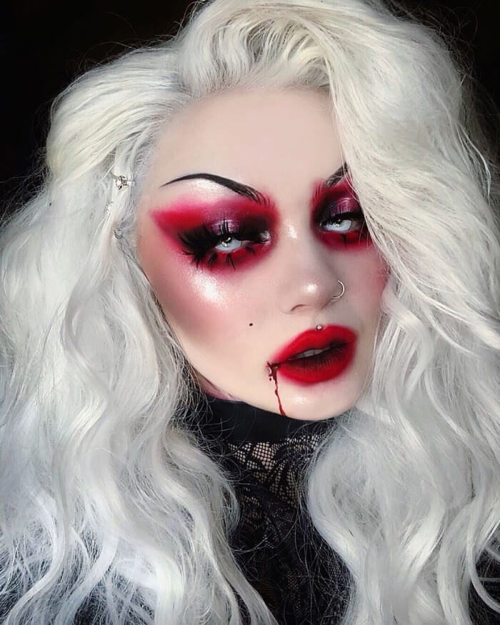 Этот тип макияжа блистает на вечеринках по поводу Хэллоуина каждый год, в чём причина – непонятно. К тому же – это классика, ведь что может быть лучше стиля, проверенного временем?!