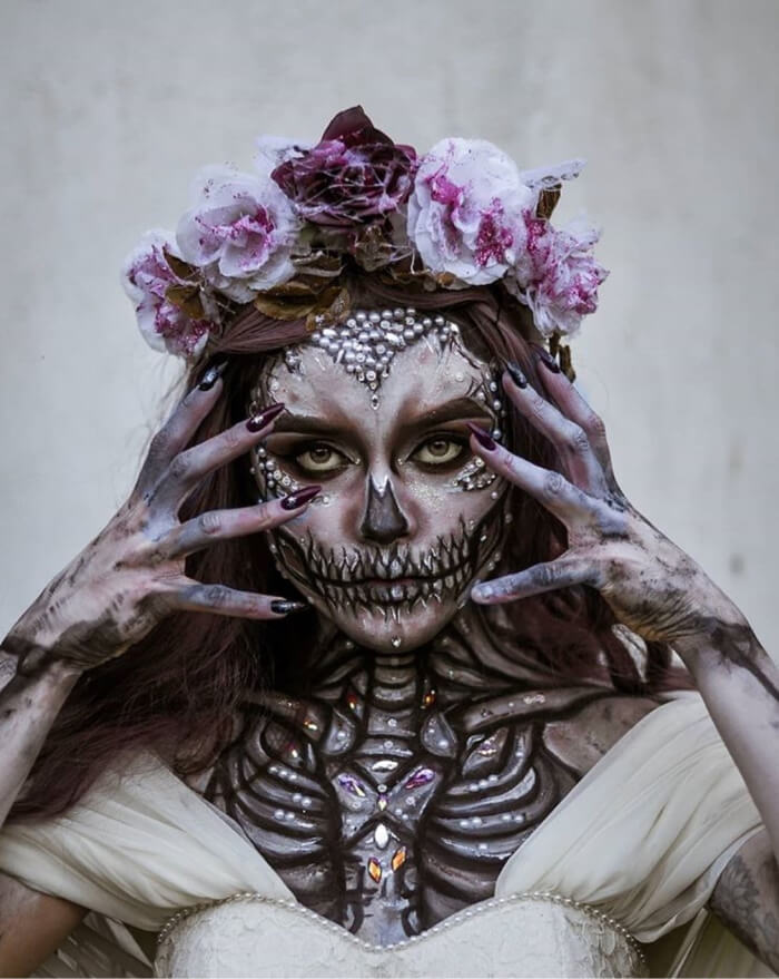 Сегодня любители красочных черепов есть во всем мире. Этот образ вдохновляет гримеров и визажистов. В наше время макияж «Мексиканский череп» на Хэллоуин, карнавал или костюмированную вечеринку – довольно распространенное явление.