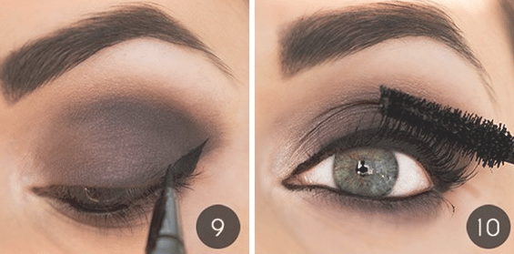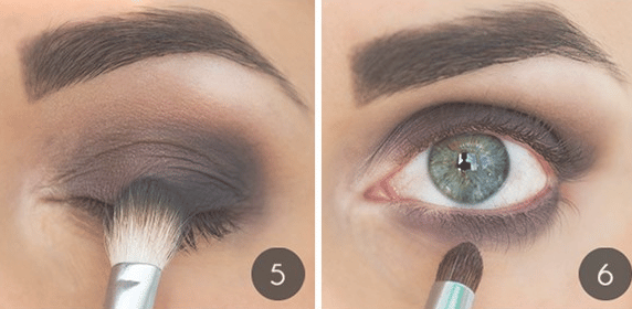 - Подкрасьте нижнее веко этими же темными тенями от наружной части к внутренней, делая цвет менее заметным.