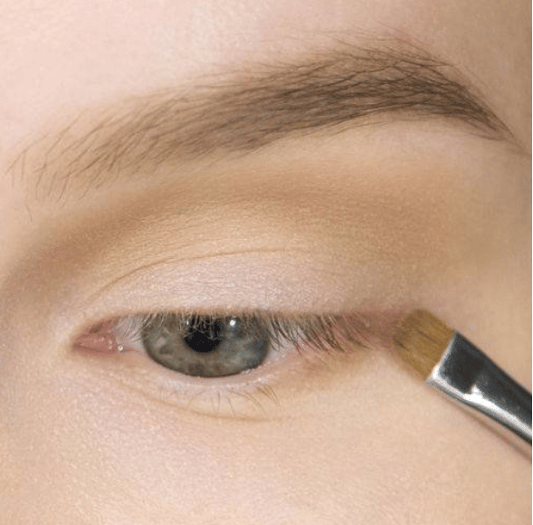 - Выберите основной цвет макияжа, например, коричневый, и нанесите его вдоль орбитальной границы. Нюдовые и светло-коричневые тени естественно оттенят глаза.