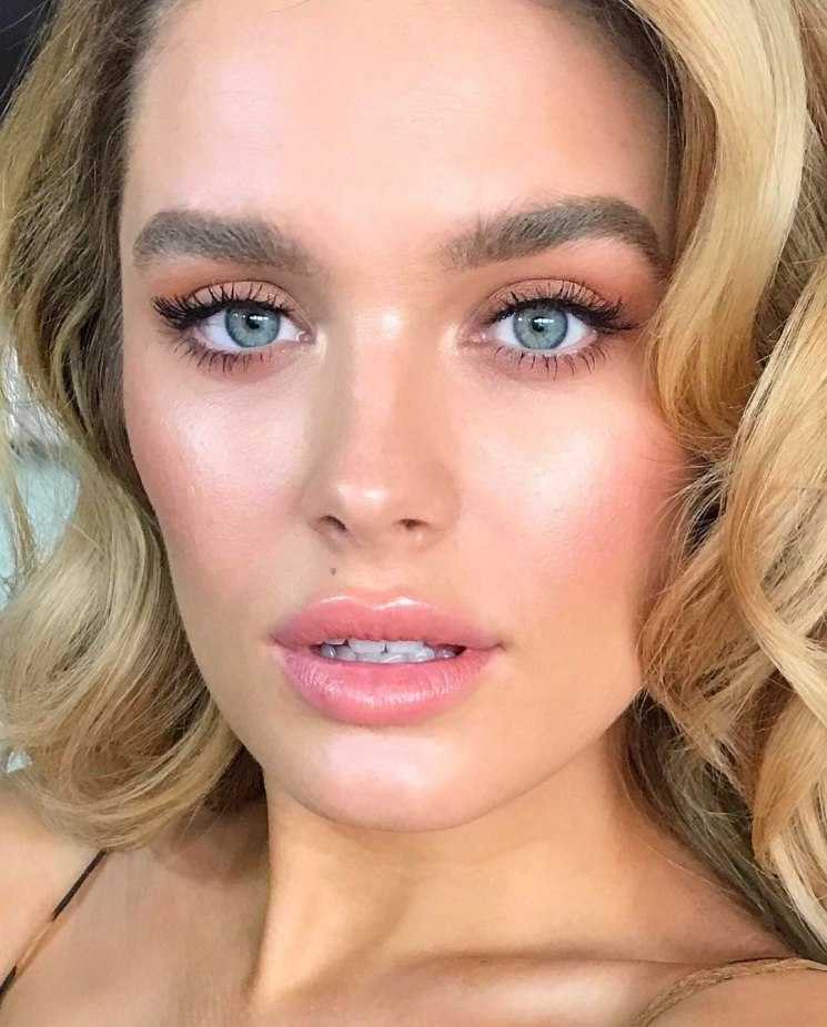 Естественный макияж для блондинок приветствует нежно-розовые цвета, если у вас золотистые локоны, вам подойдет персиковый цвет помады: