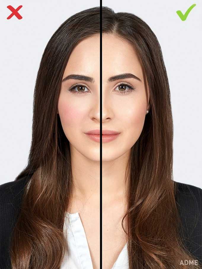 - Чтобы смотреться на фото эффектней, сделайте коррекцию недостатков кожи консилером, выровняйте цвет лица тональным кремом, а скулы подчеркните бронзером или пудрой более темного оттенка.