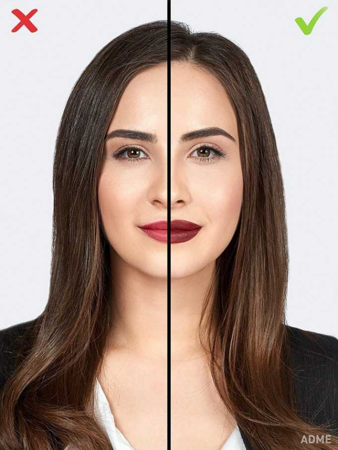 Ныне модные насыщенные помады, к сожалению, не подойдут девушкам с тонкими губами. Тёмные оттенки зрительно делают их еще тоньше.