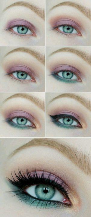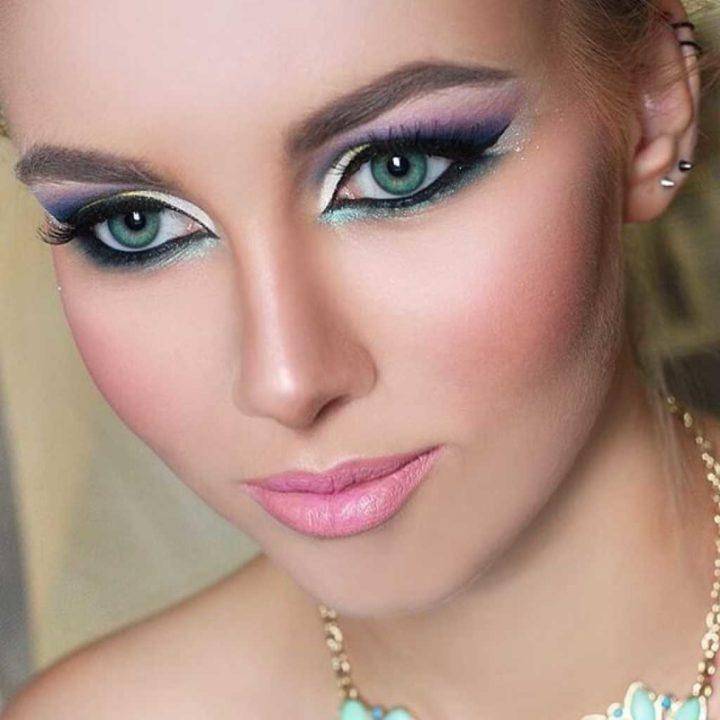 Девушки обладательницы голубых глаз очень чувственные и женственные натуры. К такому цвету глаз отлично подойдут синие, голубые, зеленые, серебряные и другие холодные оттенки теней. Используйте технику дымчатого макияжа, внешний уголок глаза, который вы можете затемнить в другом цвете.