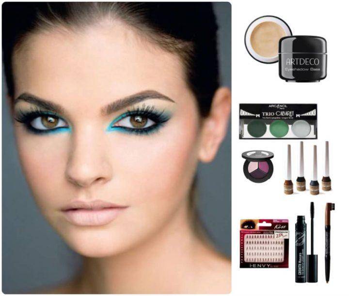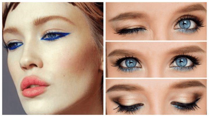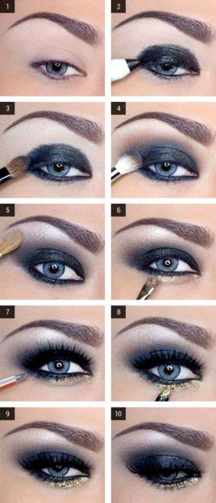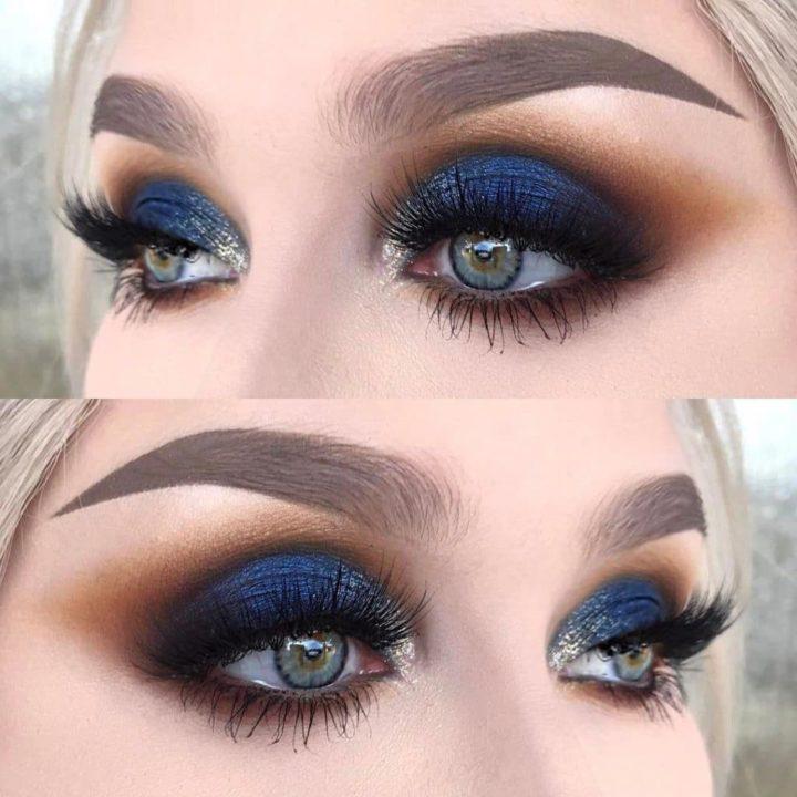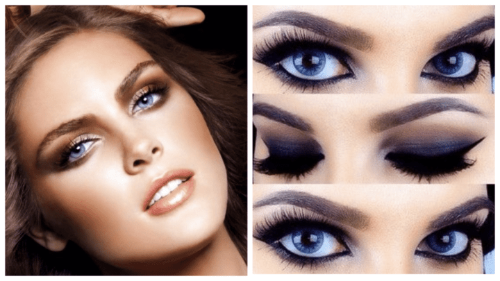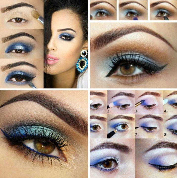 Макияж на 2017 год для голубых глаз можно выполнять в светло-песочных или золотистых оттенках, дополняя его черной подводкой или насыщенной угольно-черной . Для вечернего выхода голубоглазые девушки могут смело использовать черный цвет. Сочетая оттенки от перламутрового жемчужного и серого до насыщенного черного можно создать прекрасный образ, который оттенит голубой цвет глаз. Голубоглазым прекрасно идут неяркие блестки в макияже и черные широкие стрелки.