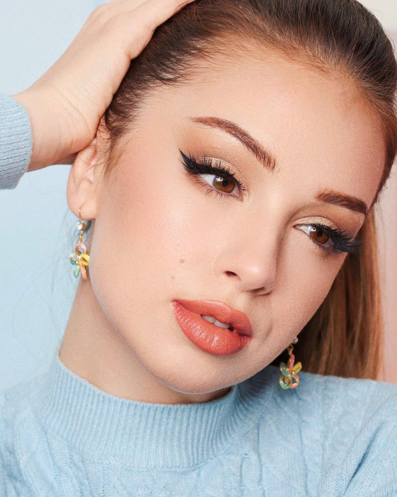 В другом варианте используйте серые и черные тени, которые вы можете растушевать с помощью аппликатора. В качестве помады стоит выбрать более пастельные тона, ведь одного яркого акцента на глаза уже хватит. Избегайте в тенях только одного цвета – ярко оранжевого. Это единственный цвет, который не подходит к карим глазам.