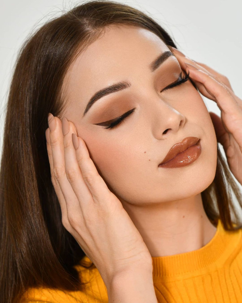 - Тени предпочтительны нейтральных и нежных оттенков: персиковые, бежевые, молочные, светло-коричневые.