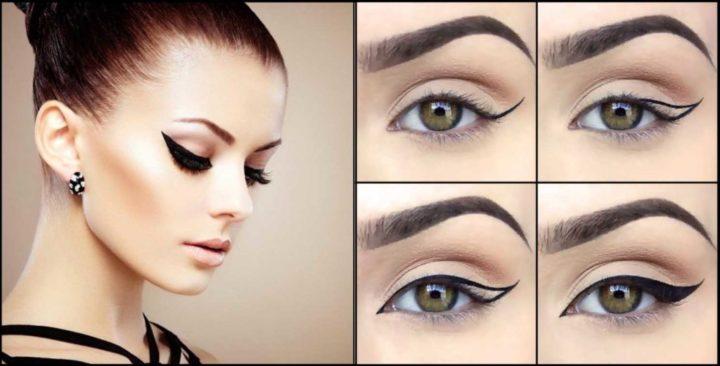 Классический вариант для женщин – чёрная подводка, в конце переходящая в очаровательную стрелку. Такой лёгкий, но не слишком тёмный макияж не потребует много дополнительного времени. За несколько недель вы привыкните своими руками быстро проводить линии за несколько секунд.