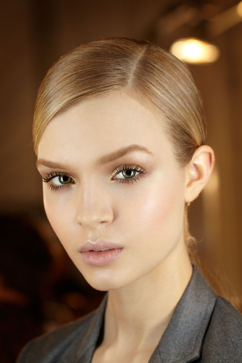 - Нейтральный деловой макияж для серых глаз — идеальный вариант.