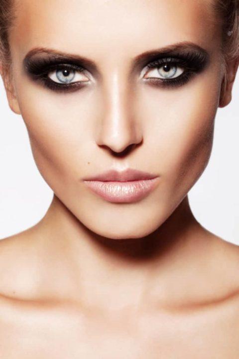 К серым глазам отлично подходит макияж в стиле «smoky eyes» Кстати, такой макияж отлично впишется в атмосферу корпоратива, что позволит вам не остаться без внимания. К такому макияжу глаз лучше всего подойдет матовая или пастельного тона помада.