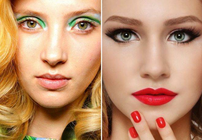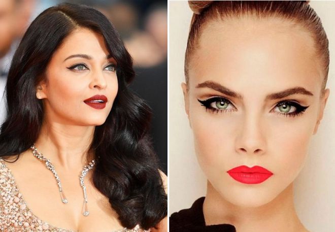 Макияж на 2017 год для зеленых глаз органично смотрится в цветах, контрастных зеленому по цветовому спектру. В основном это: розовый, лиловый, фиолетовый, сиреневый, красно-коричневый, коричневый. Используя эти оттенки, можно добиться глубины и яркости зеленого цвета глаз: