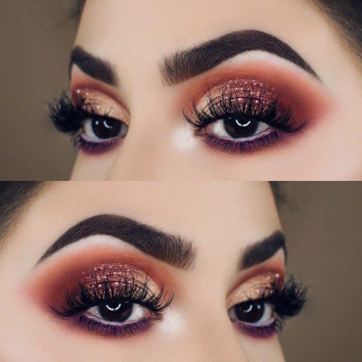 Карий цвет глаз считается самым распространённым цветом глаз, и существует масса различных видов и цветов теней, которые отлично сочетаются с таким оттенком радужки. Лучшим вариантом будет сделать яркие, черные стрелки, а также фиолетовые тени матовой структуры.