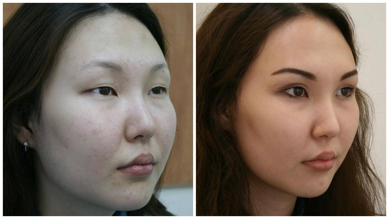 Специальный макияж, скрывающий такую особенность азиатских девушек, меняющий грустное выражение лица, создают в несколько этапов: