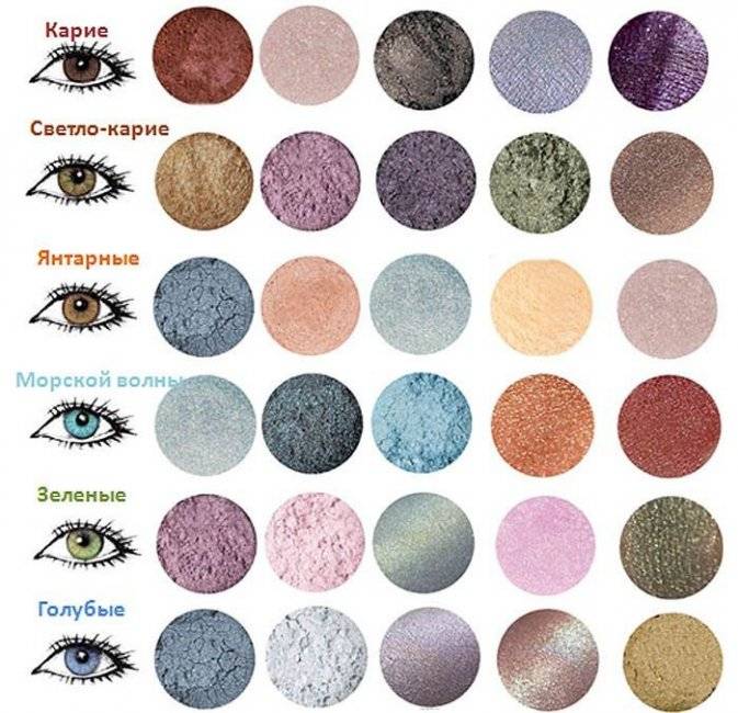 Подбирая тени, обязательно учтите цвет ваших глаз. Согласно правилам нанесения повседневного и свадебного макияжа, не стоит использовать тени такого же оттенка, как и глаза. Лучше подчеркнуть их красоту и глубину с помощью контрастных оттенков, которые вы сможете подобрать с помощью следующей картинки.