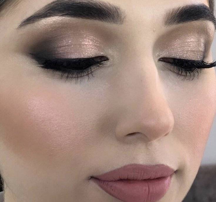 Вариант легкого вечернего макияжа подойдет всем, кто стремится к естественности, но хочет выглядеть красиво. В таком случае больше внимания придется уделить тону кожи и применить технику контуринга. На безупречно проработанном лице вечерний макияж глаз можно выполнить бежевыми или светло-коричневыми тенями. Губы также разрешается накрасить нюдовой помадой, но с контурным карандашом. Помним про четкость линий!