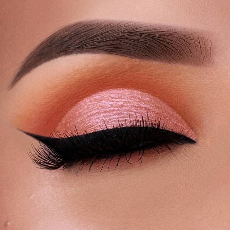 Шаг 3. Макияж глаз. Данный вечерний макияж глаз отлично подойдет девушкам с любым типом внешности. Черная подводка подчеркнет разрез глаз, а тени в золотистых и персиковых тонах сделают образ более праздничным.