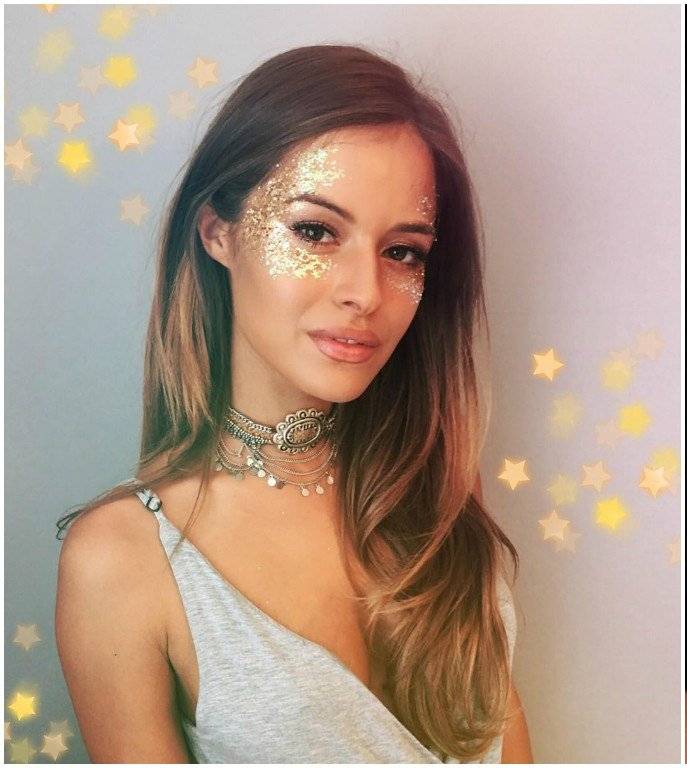 - Звёздочки, блеск, глиттер, блёстки — всё это должно присутствовать в вечернем макияже, но при этом нужно использовать их дозировано и знать, на какие части лица они наносятся.