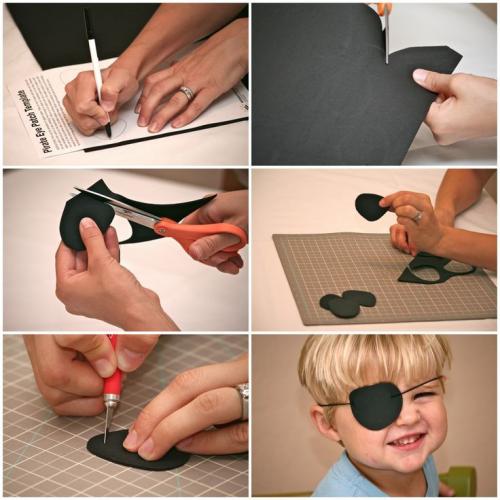 Повязка на глаз. Для полноты пиратского образа можно сделать повязку на глаз из черной ткани, которая, например, осталась после обрезания штанов, или из картона.
