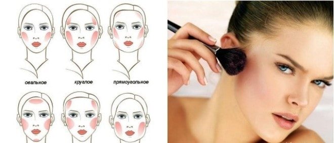 Нанесение румян может подкорректировать недостатки овала лица. Для каждой формы лица – своя схема нанесения румян. Цвет румян подбирается в зависимости от цвета кожи, волос и помады. В любом случае нежный макияж на свадьбу требует натуральных розовых или бежевых тонов, возможно, с легким перламутром – и совсем немного.