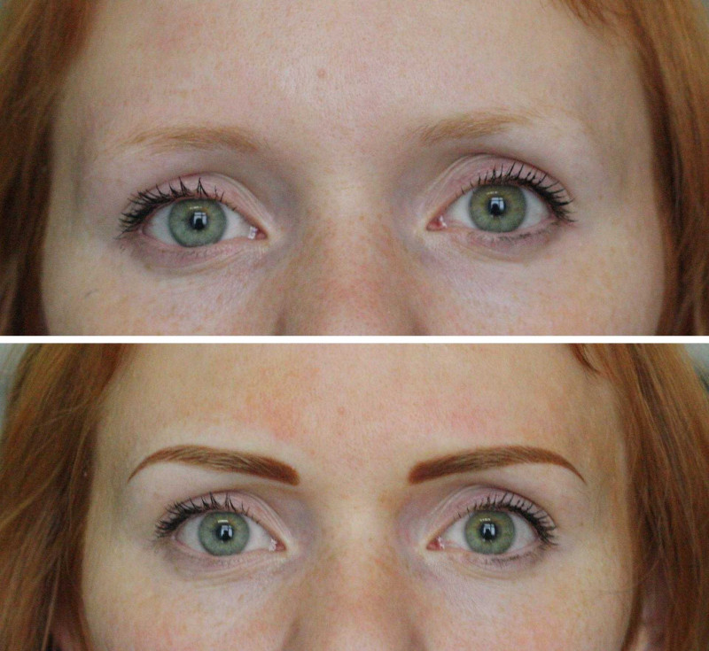 Если брови тонкие и светлые от природы, то рекомендуется просто выполнить окраску волосков. Сегодня популярностью пользуется биотатуаж, при котором используется хна. С выбором оттенка и красящего состава поможет мастер. В результате салонной процедуры у женщины появятся красивые естественные бровки, которые на протяжении месяца будут украшать лицо.