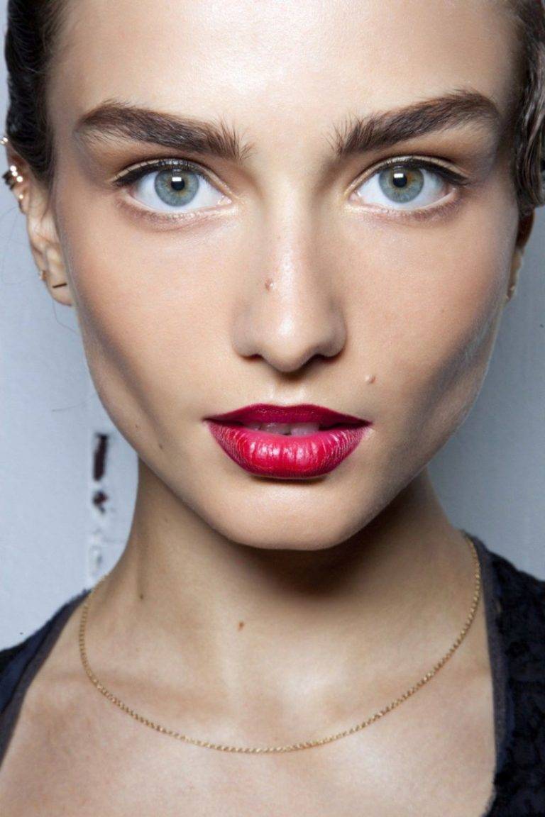 может быть использована самая разноплановая цветовая палитра. Вы можете создать дополнительный визуальный объем губ с помощью плавного перехода двух-трех близких по тону оттенков помады. А можете поступить более смело, взять нарочито контрастные цвета и создать образ в стиле поп-арт, словно сошедший с картины Энди Уорхола. На фото