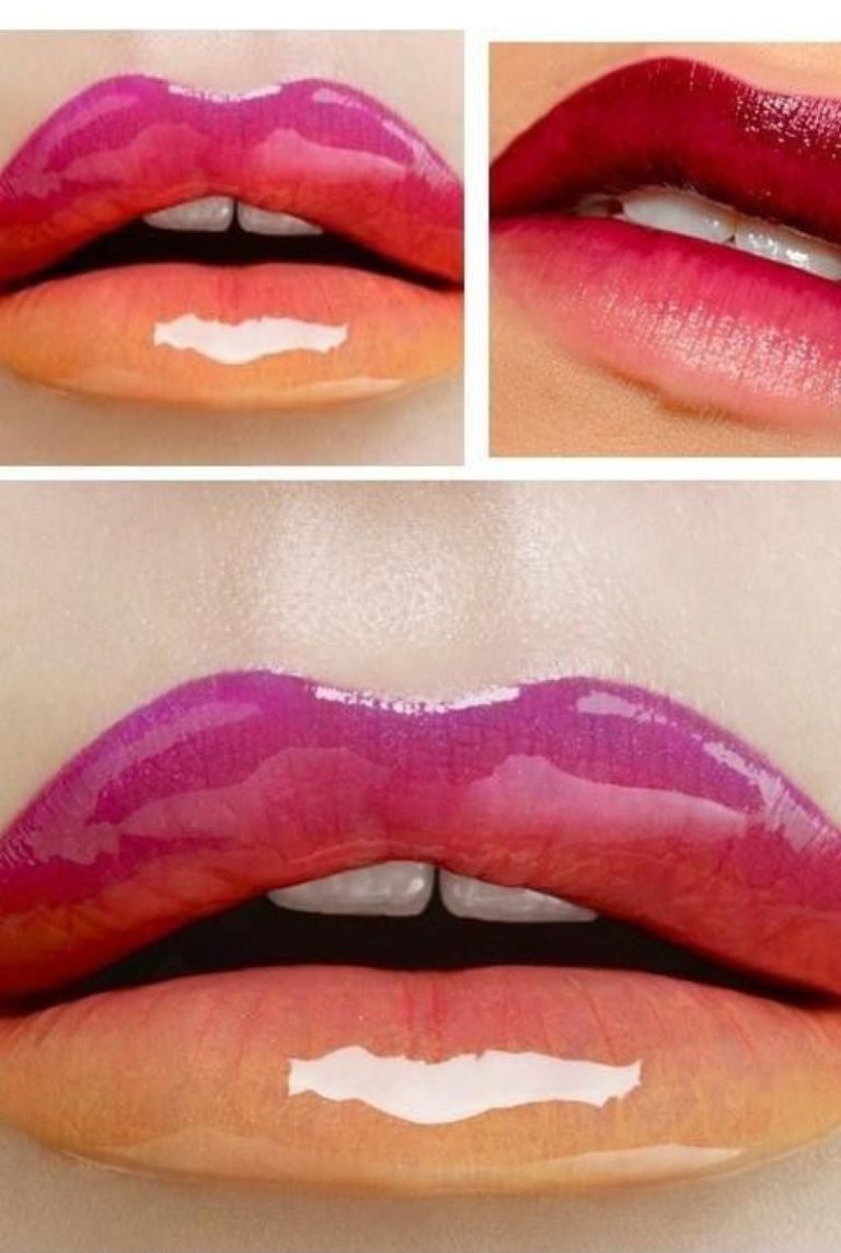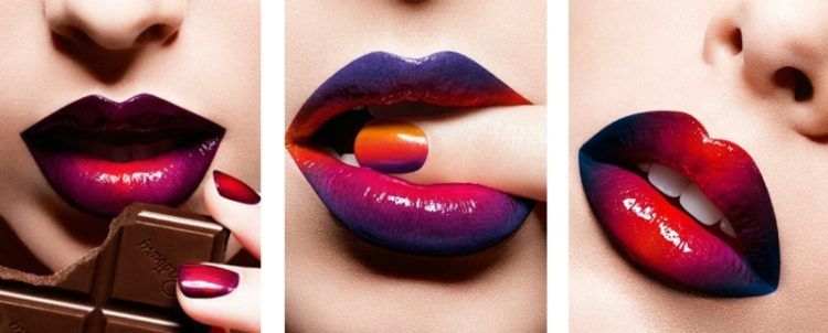 Вариантов создания мейк-апа с эффектом градиента существует довольно много. Можно сделать макияж ombre на одной или сразу на двух губах, вертикально или горизонтально, с помощью помады или блеска. Также достаточно разнообразной может быть цветовая гамма используемой декоративной косметики. Оттенки должны всегда соответствовать целостному образу и вдохновлять.