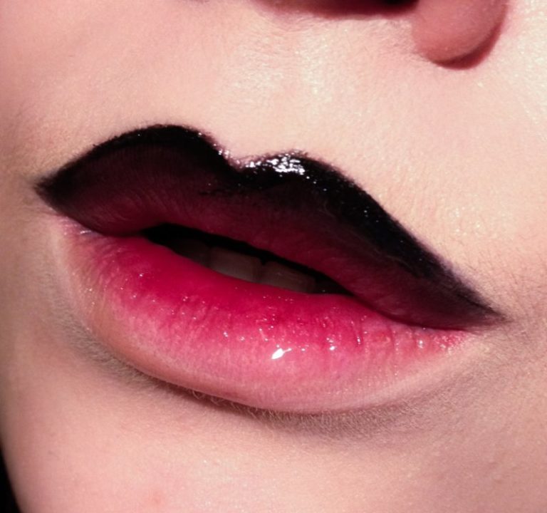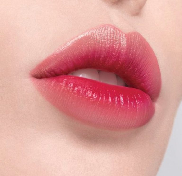 Переход между оттенками может быть как плавным, так и резким, когда верхняя губа закрашивается одним цветом, а нижняя другим, но сочетающимся с первым. При этом на края обычно наносят более темный тон, а в центр – светлый, чтобы визуально сделать губки полнее.