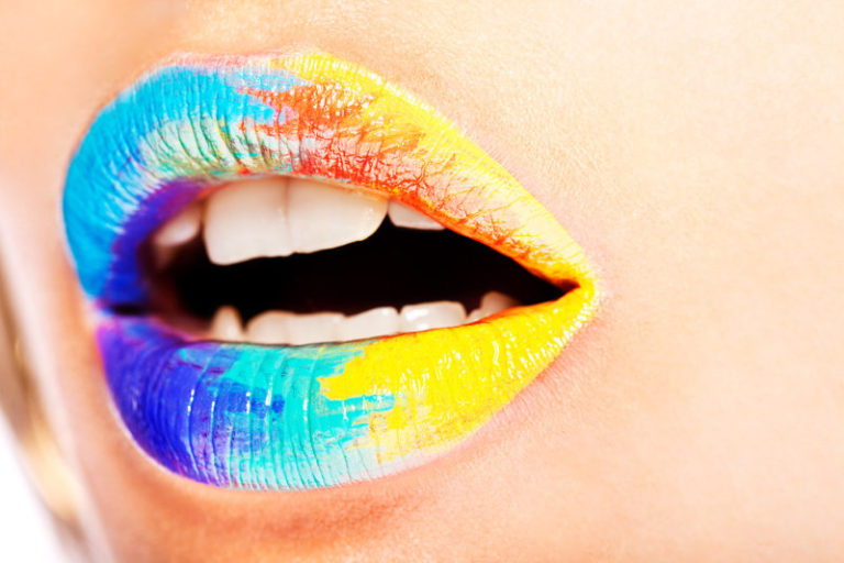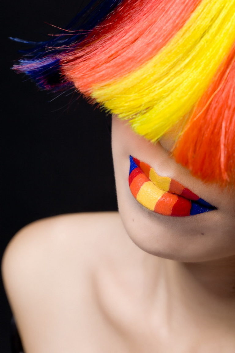 Возможностей распределения цветов на губах, при наличии фантазии, можно придумать множество;) В основном, конечно, используются два цвета — это и удобно, и практично, и неэнергоёмко. Можно попробовать использовать и больше цветов, но тогда есть риск, что результат будет выглядеть нелепо, неумело или слишком театрально. Хотя, всё зависит от гаммы цветов.
