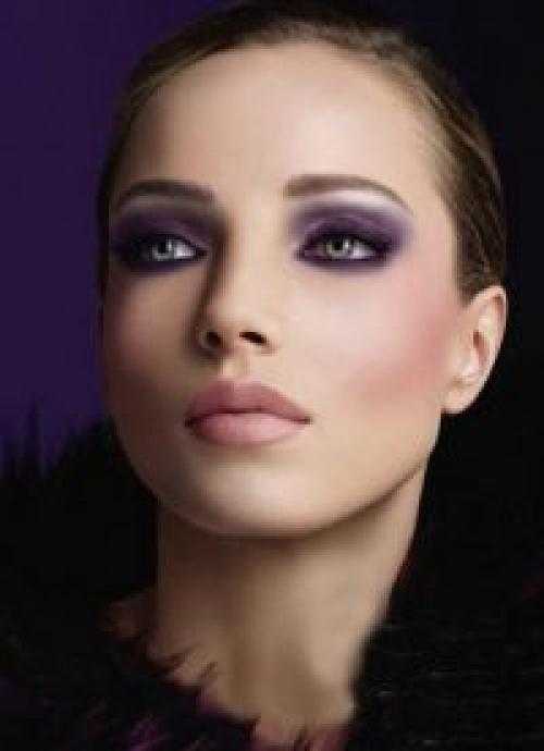 В вечернем макияже допустимо большее разнообразие цветов и оттенков. Под платье с обнажёнными плечами хорошо подойдут серые, сиреневые и чёрные оттенки. Светлые оттенки нужно распределять на всём верхнем веке, более тёмными тонами выделять внешний угол глаза, светлыми – внутренний угол, средним оттенком подчёркивать изгиб на верхнем веке.