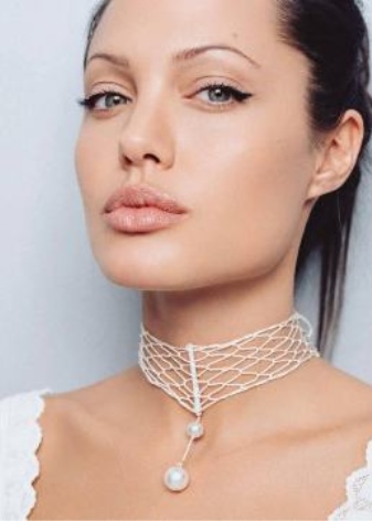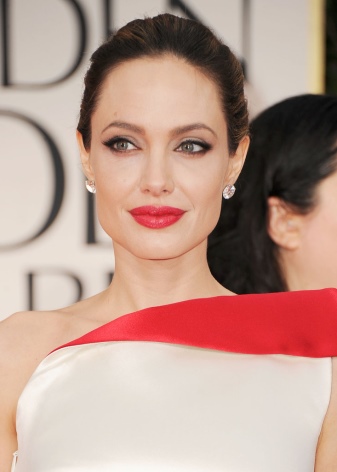 Рекомендуем обратить внимание на звездный образ Анджелины Джоли, где на ней белое платье и красная помада.