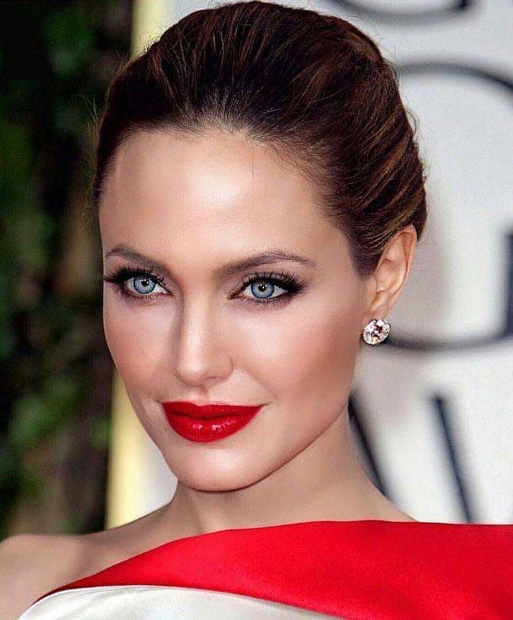 Не стоит забывать, что в макияже под красное платье, акцент делается либо на глаза, либо на губы. Двух акцентов одновременно на лице быть не должно.