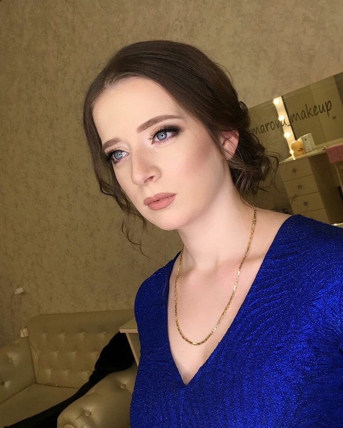 Макияж под синее платье для серых глаз