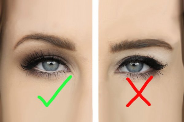 - Выделяя внешние уголки, старайтесь не трогать гусиные лапки, которые мгновенно прорисовываются под декоративной косметикой.