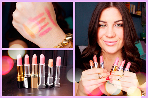 - Покрасить губы светлой помадой персикового, кораллового либо другого подобного оттенка.