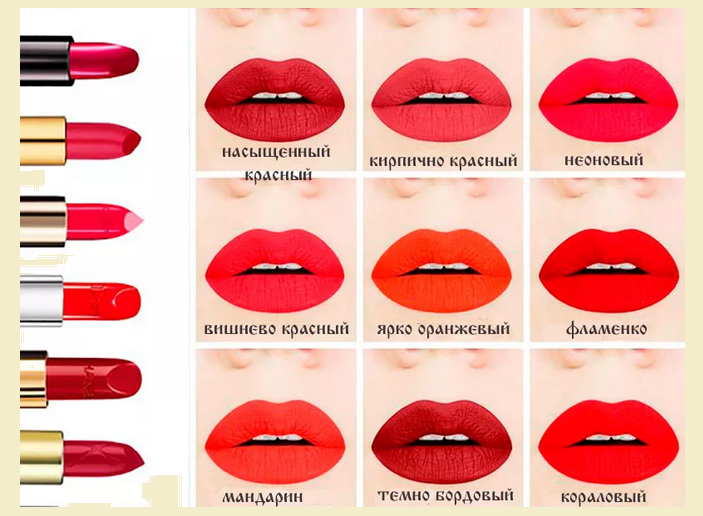 В самом начале мы выяснили, что красный цвет помады идет абсолютно всем. Главное — найти подходящий по цветотипу оттенок. Например, матовую основу можно использовать для любого случая: и для работы, и для встречи с друзьями?. Она выглядит одновременно торжественно и сдержано. Глянцевая красная помада, как и перламутровая, — беспроигрышный вариант для вечернего или праздничного макияжа.