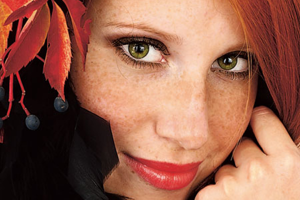 Предполагаете использовать в мейк-апе блеск, тени подберите без блеска, натуральных оттенков. В дневном макияже используйте светлые оттенки красного, в вечернем к вашим волосам больше подойдут винные и бордовые цвета. Они придадут образу элегантности и нежности.
