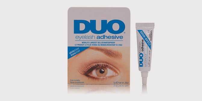 Молочно-белый клей, после высыхания он становится полностью прозрачным и незаметным на веках. Такой препарат позволяет использовать подводку, карандаш или тени любого оттенка, так как не будет просвечивать из-под косметики.