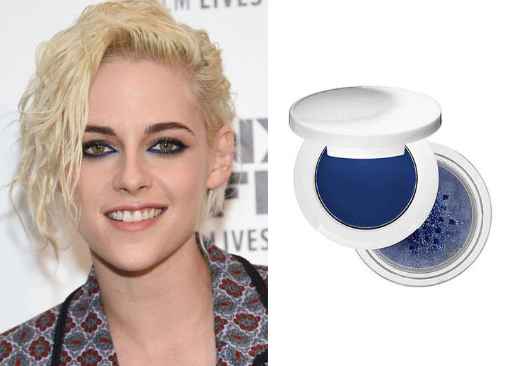 Отличный вариант гранжевого мейкапа. Чтобы сделать макияж, как у Кристен Стюарт, возьмите небольшую кисть и нанесите чуть-чуть синих теней в уголки глаз, усиливайте пигмент, двигаясь к краю глаза вдоль линии роста ресниц.